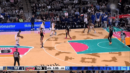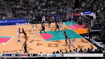 库里第三节单节22分,生涯第43次单节20+,断档领先第二名科比的36次;同样地,30岁之后第43次单场40+,仅次于乔丹的44次;尤其是比赛中单挑戏耍文班的一球,让人梦回当年军训戈贝尔。