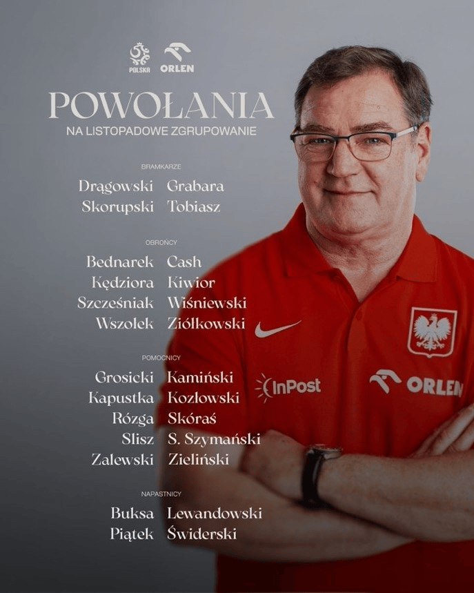 波兰大名单: 莱万领衔, 皮亚特克、泽林斯基、基维奥尔在列