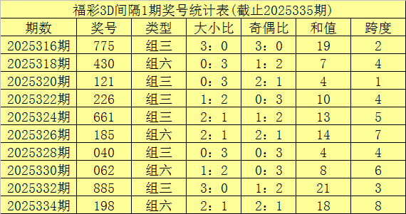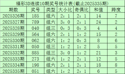 开奖回顾:福利彩票3D第25335期奖号开出051。奖号类型为组六,奇偶形态为偶奇奇,大小形态为小大小。