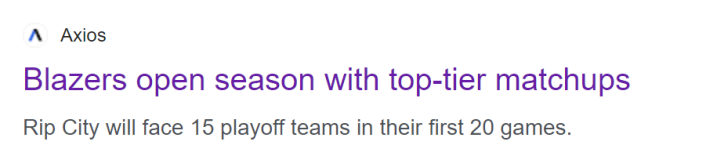 他们将在10月23日开启新赛季,第一个对手是上赛季打到西部决赛的森林狼队。在那之后,他们将依次面对勇士队、快船队和湖人队,然后在第五场比赛中面对爵士队,这是他们遇到的第一支上赛季战绩不佳的球队。赛程显示,开拓者的前20场比赛,其中15场比赛的对手打进过上赛季的季后赛。在这段时间里,他们还将和卫冕冠军雷霆队交手三次。