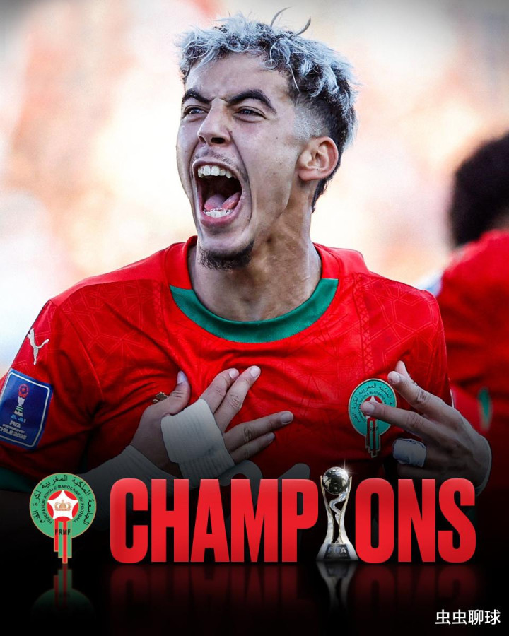 这不仅是摩洛哥的第一个世青赛冠军,也是非洲历史上的第二次捧杯;上一次,还要追溯到2009年的加纳。如今,摩洛哥用一场场逆天之战,从法国到阿根廷,从小组赛到决赛,完成了属于他们梦想。