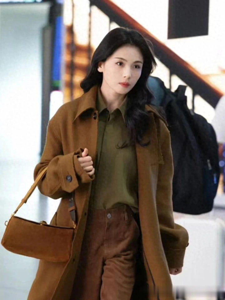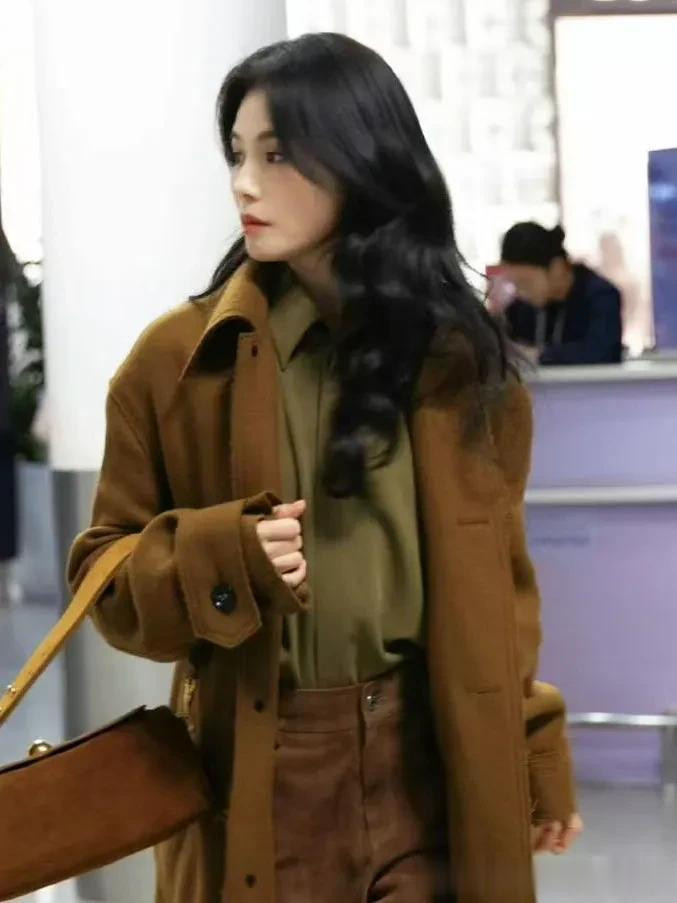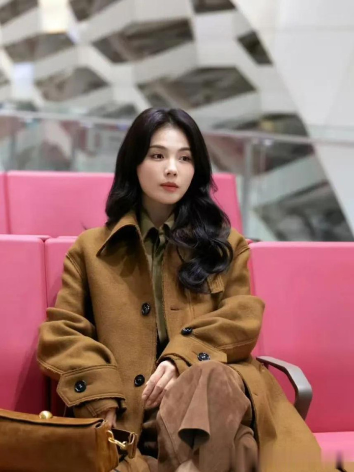 刘涛新烫了油画卷发真惊艳! 穿棕色大衣+衬衫+阔腿裤, 洋气又高级